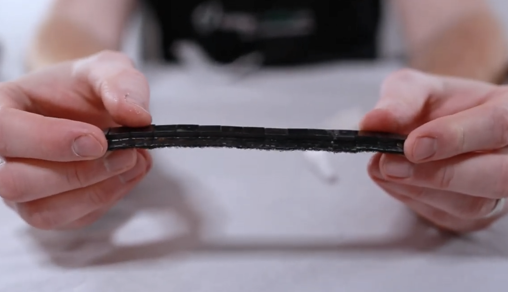 Fingers comprise poron, dense foam, followed by plastic on top.